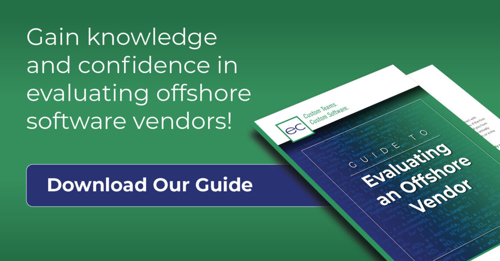 EC Group specializes in acting as a stateside vendor who sources exceptional offshore development talent for your company’s team and projects. With 20+ years of experience and successful clients, we are able to understand your goals and in turn provide the software developers that perfectly fit the vision you have.